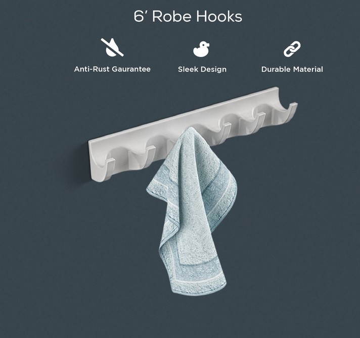 Anti-Rust Finish: Made with high-grade materials and coated with a rust-resistant finish, the 6-Rob Hook maintains its shine and strength even in humid and wet environments, ensuring long-lasting performance.